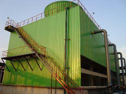 工業(yè)生產(chǎn)或制冷工藝過程中產(chǎn)生的廢熱,一般要用冷卻水來導走。冷卻塔的作用是將挾帶廢熱的冷卻水在塔內(nèi)與空氣進行熱交換,使廢熱傳輸給空氣并散入大氣中。例如:火電廠內(nèi),鍋爐將水加熱成高溫高壓蒸汽,推動汽輪機做功使發(fā)電機發(fā)電,經(jīng)汽輪機作功后的廢汽排入冷凝器,與冷卻水進行熱交換凝結(jié)成水,再用水泵打回鍋爐循環(huán)使用。這一過程中蒸汽的廢熱傳給了冷卻水,使水溫度升高,挾帶廢熱的冷卻水,在冷卻塔中將熱量傳遞給空氣,從風筒處排入大氣環(huán)境中。冷卻塔應(yīng)用范圍:主要應(yīng)用于空調(diào)冷卻系統(tǒng)、冷凍系列、注塑、制革、發(fā)泡、發(fā)電、汽輪機、鋁型材加工、空壓機、工業(yè)水冷卻等領(lǐng)域,應(yīng)用多為空調(diào)冷卻、冷凍、塑膠化工行業(yè)。