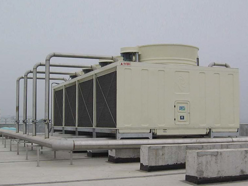 工業生產或制冷工藝過程中產生的廢熱,一般要用冷卻水來導走。冷卻塔的作用是將挾帶廢熱的冷卻水在塔內與空氣進行熱交換,使廢熱傳輸給空氣并散入大氣中。例如:火電廠內,鍋爐將水加熱成高溫高壓蒸汽,推動汽輪機做功使發電機發電,經汽輪機作功后的廢汽排入冷凝器,與冷卻水進行熱交換凝結成水,再用水泵打回鍋爐循環使用。這一過程中蒸汽的廢熱傳給了冷卻水,使水溫度升高,挾帶廢熱的冷卻水,在冷卻塔中將熱量傳遞給空氣,從風筒處排入大氣環境中。冷卻塔應用范圍:主要應用于空調冷卻系統、冷凍系列、注塑、制革、發泡、發電、汽輪機、鋁型材加工、空壓機、工業水冷卻等領域,應用多為空調冷卻、冷凍、塑膠化工行業。